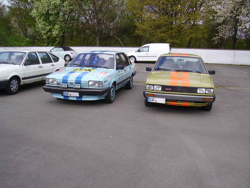 | Links scheinbar ein Santana (bzw. Passat GL) Fünfzylinder, rechts der "Pornstyler", ein Frühwerk von "KLE" - schillernde Paradiesvögel aus der Region | ||||||||||