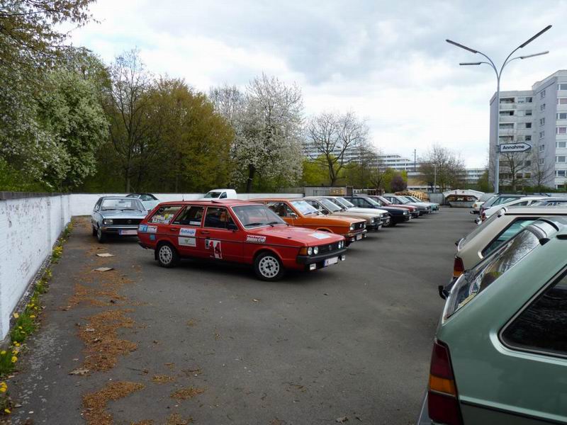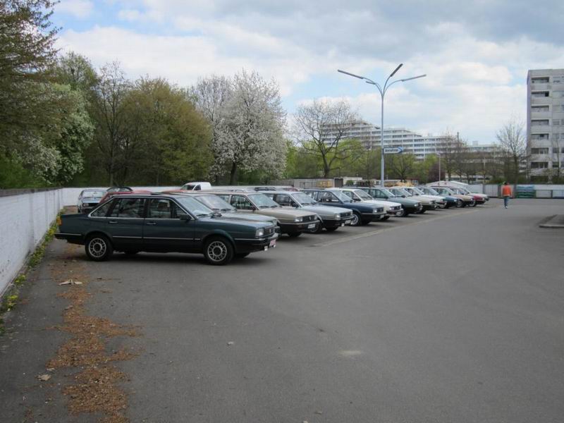 | In der ersten Reihe auf dem Parkplatz dominierten dunkle Metallicfarben, helle und dunkle Goldtöne und Weiß. (Angenommen wurde an dem Tag allerdings kein Auto.) - Fast wie "damals", unglaublich! | |||||||||||