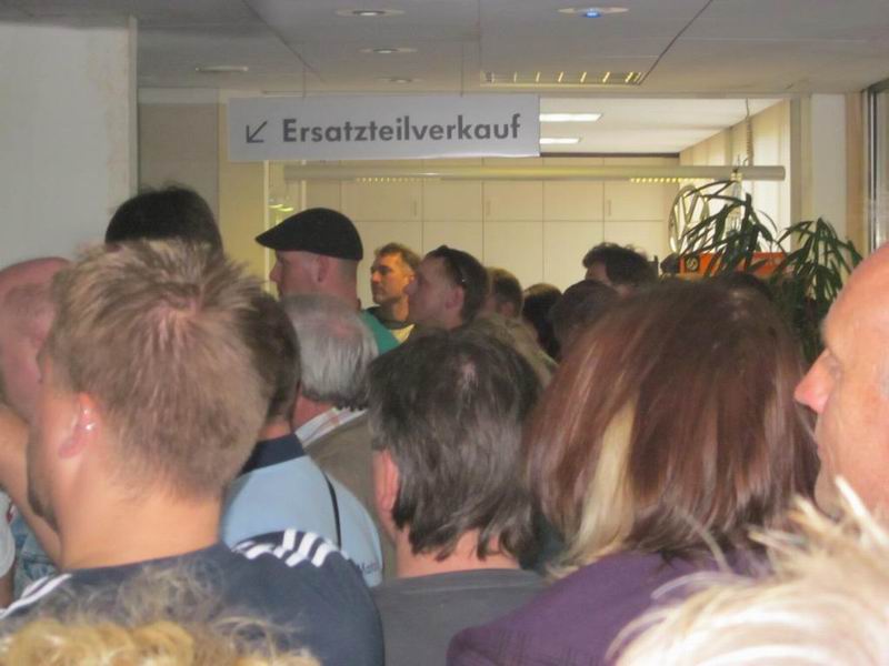 | Auf dem Bild sind nicht alle Personen abgebildet, die sich am Schalter in der Hoffnung drängten, seltene und an anderer Stelle längst vergriffene Teile für Ihr automobiles Schätzchen abgreifen zu können. | |||||||||||