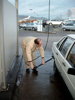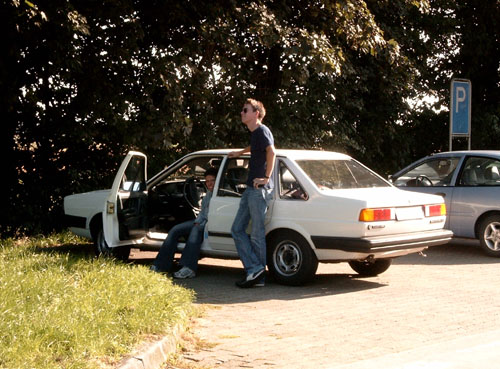| Nachdem allerorten auf Effizienz und Kostensenkung geachtet wird, kann sich auch das Santanazentrum Braunschweig nicht mehr leisten, überall mit den so gut ausgestatteten Fünfzylindern vorzufahren. Auch um die Bodenhaftung nicht zu verlieren, ist es nicht verkehrt, wenn man von Zeit zu Zeit ohne ZV, Servolenkung, elektrische Helferlein und Veloursitze unterwegs ist. Hier ist er also - unser offizieller Dienstwagen.