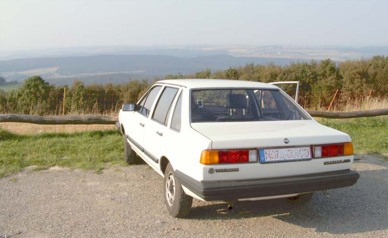 Das Licht der Welt erblickte ich im September 1984 in Emden. Kaum entwickelte ich auf dem Montageband ein Bewusstsein, da stellte ich fest, dass ich einer der letzten meiner Art sein würde, denn auf dem Nachbarband sah ich schon Karosserien wie meine, aber mit ganz dicken Stoßstangen und dem Schriftzug "Passat" vorbeiziehen. "Vorserienmodelle" nannten die sich hochnäsig, viele gut ausgestattet mit Fünfzylindern und viel Plüsch und Chrom... - einige mit 90PS hatten sogar schon G-Kat.