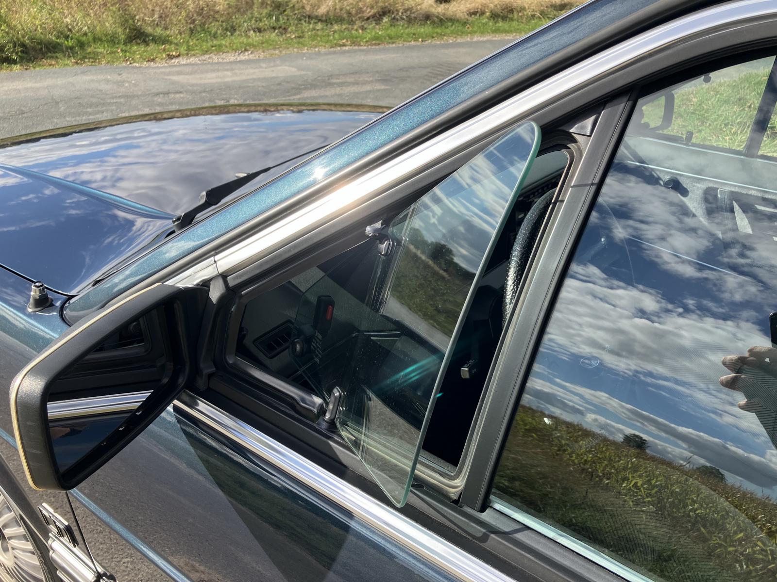 Die Tür entspricht der des deutschen Passat-Zweitürers. Die Armauflage ist deutlich länger. An der Türablage findet sich über dem Lautsprecher eine Sicke, die es in Deutschland nicht gab. Die Zierleisten sind massiv aus Edelstahl gefertigt. Auffällig trotz der hochwertigen Details der nicht verchromte, sondern rein schwarze Türöffner: Offenbar wäre eine dem deutschen Teil entsprechende Ausführung in Brasilien zu teuer geworden. Die Spiegel werden noch von Hand verstellt - elektrisch einstellbare Spiegel waren 1986 in Brasilien nicht zu haben.