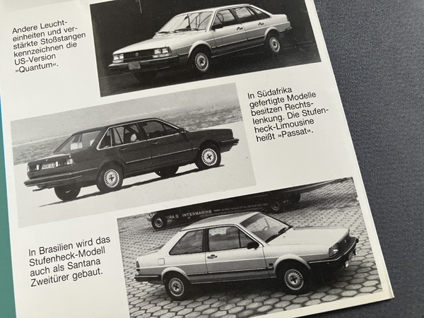 | Unten rechts das Foto, mit dem bei mir Ende der Neunziger das Interesse am brasilianischen Santana begann - ein Pressefoto der Volkswagen do Brasil, abgedruckt hinten im Umschlag des "Jetzt helfe ich mir selbst" von D. Korp zu Passat 32b und Santana.