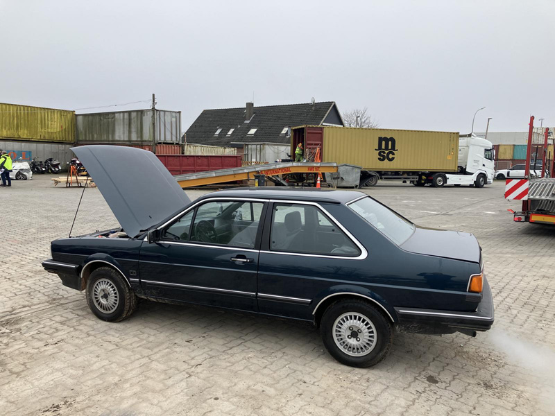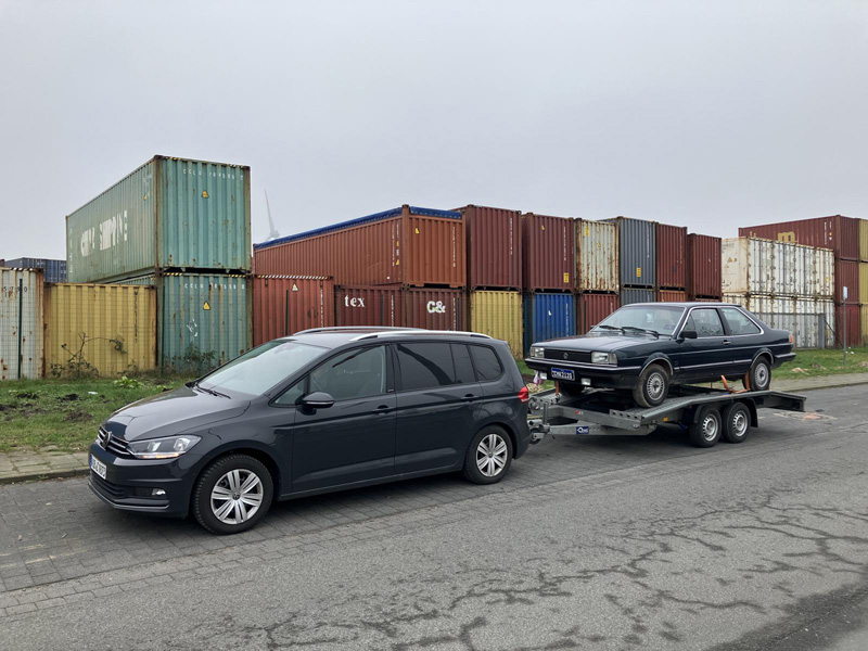 | Nichts wie weg also - natürlich nicht auf eigener Achse, schließlich waren auch die brasilianischen Kennzeichen nicht mehr gültig. So ging es dann ins neue Zuhause für den Santana CD. |