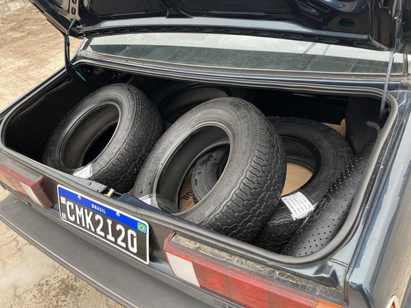 | Im Kofferraum lagen bei der Abholung die originalen Reifen von 1986. Wenn sie nicht explizit zum Fahrzeug gehört hätten, wäre es sehr schwierig gewesen, sie zusammen mit dem Fahrzeug im Container zu importieren: Es ist bei der Einfuhr ein großer Unterschied, ob ein Auto (mit Zubehör) im Container steht - oder ob da noch irgendwelche weiteren Teile dabei sind. | |||||||||||