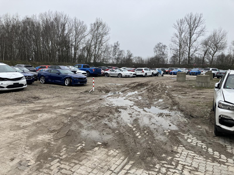 | ... vom Betriebshof der Handling-Firma, die im Auftrag des Exportagenten agiert: Hauptsächlich werden hier Fahrzeuge mit Totalschaden aus Nordamerika umgeschlagen, die nach Osteuropa weiter transportiert werden, um dort günstig repariert zu werden. Aber sollte man unter diesen Umständen Oldtimer bewegen...? |