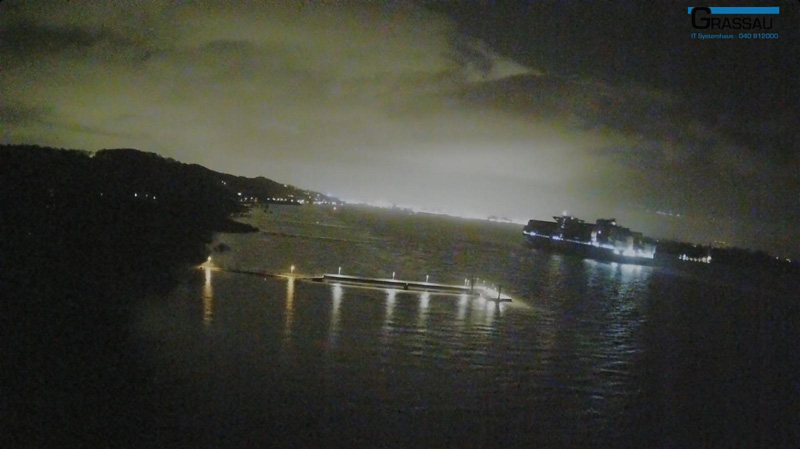 | nächste Station war nicht Bremerhaven, sondern Hamburg. Hier Fahrt elbaufwärts - die Cisnes am 4.2.2024 abends bei Wittenbergen. | |||||||||||
