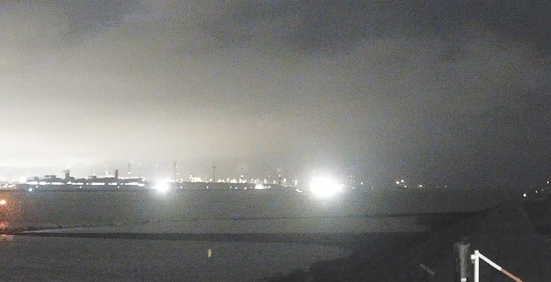 | Erster Hafen in Europa: Die Cartagena Express läuft über den Neuen Wasserweg in Rotterdam ein. Das blendend helle Licht ist ein Scheinwerfer am Bug... - ohne parallele Nutzung des Schiffstrackers ist es natürlich unmöglich, den richtigen Moment abzupassen. | |||||||||||