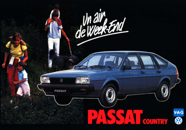 | Als im August 1984 der Passat "Country" vorgestellt wurde, war klar, daß Chrom bei modernen Autos nichts mehr verloren hatte. Folgerichtig trug der Country (Werbespruch: "Extra-Look zum Extra-Preis") außer den VW-Emblemen keinen Chrom.