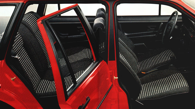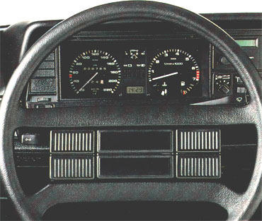 Serienausstattung des Country: Frontspoiler, Stoßleisten auf der Gürtellinie, schwarze Verkleidung an B- und C-Säulen, Vierspeichenlenkrad (vom Santana), MIttelkonsole, Stoffsitzbezüge mit "Country"-Streifen, Türablagekästen, zwei von innen einstellbare Außenspiegel, Radio "Alpha" Die einzigen wirklich nützlichen Extras dieses Wagens stellen die geteilt umlegbare Rücksitzbank und die Dachreling dar, auch wenn zu deren Benutzung zusätzlich die Tragestäbe geordert werden mußten. |