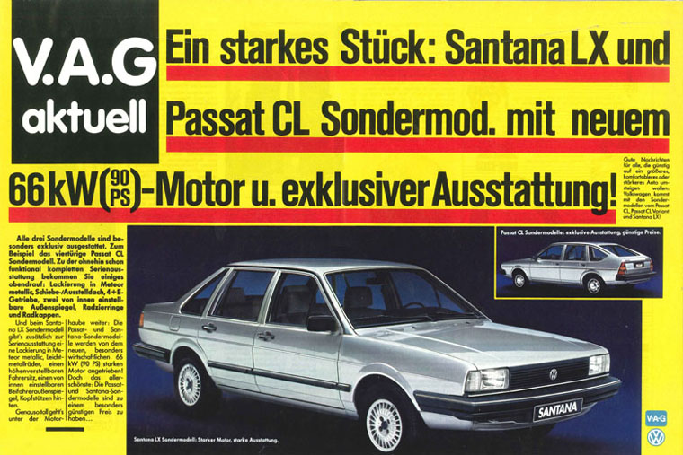 | Silber ist alle Theorie: Während das Sondermodell von Santana LX und Passat CL in den Anzeigen eher silber aussah... | |||||||||||||||